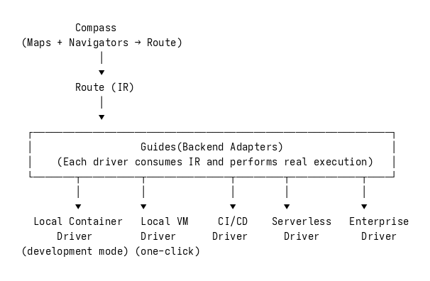 Translates a Route into native backend execution formats (e.g., GitHub Actions, GitLab CI, Argo, Kubernetes, or local scripts). Guides perform translation only — OriGen does not run workflows.